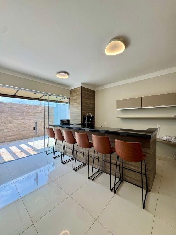 Térrea com ampla garagem p/ 6 vg sendo, 3 cob, sala 2 amb.+ Home, coz. planej, roupeiro,1 suite c/ 2 chuv, closset, 2 dormit. tipo apto americano, área gourmet com churrasqueira e Balcão refrigerado. Nova !